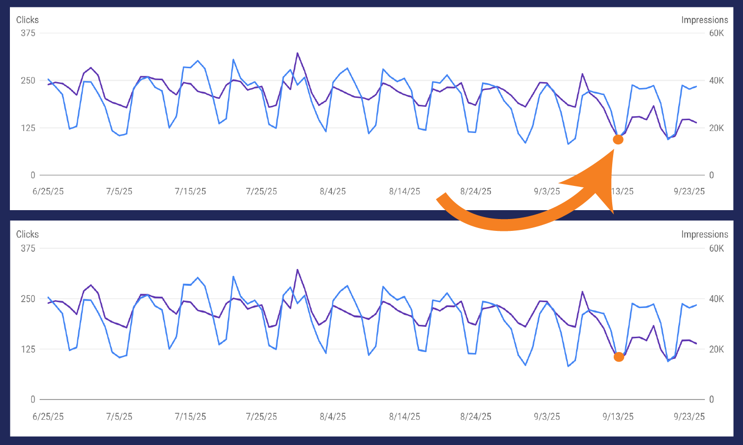 It’s important to communicate these shifts to clients, leadership, or stakeholders. Explain that drops in impressions and jumps in average position are tied to Google’s change, not necessarily actual user performance shifts. Setting this context helps prevent misinterpretation of results.